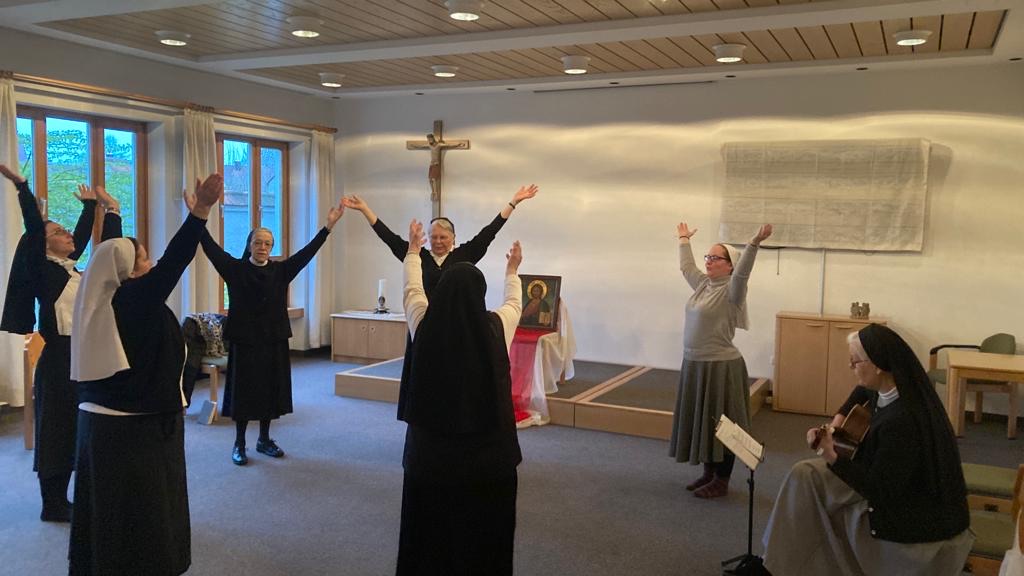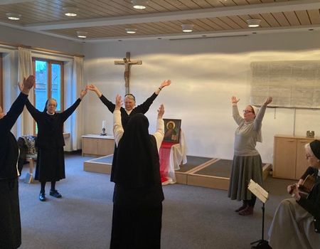 Am Abend des Ostersonntags fand sich dann eine Gruppe von Schwestern für Exerzitien ein. So war die Osterwoche geprägt von einem intensiven Unterwegssein mit dem Auferstandenen. Sr. Dorothee Breyer OSF begleitete die ignatianischen Einzelexerzitien. In ihren Impulsen gab sie manche Anregung: sich auf den „Vor-Gang" von Ostern einzulassen und sich vom Auferstandenen ermutigen zu lassen, selbst Hoffnungsträgerinnen zu sein.