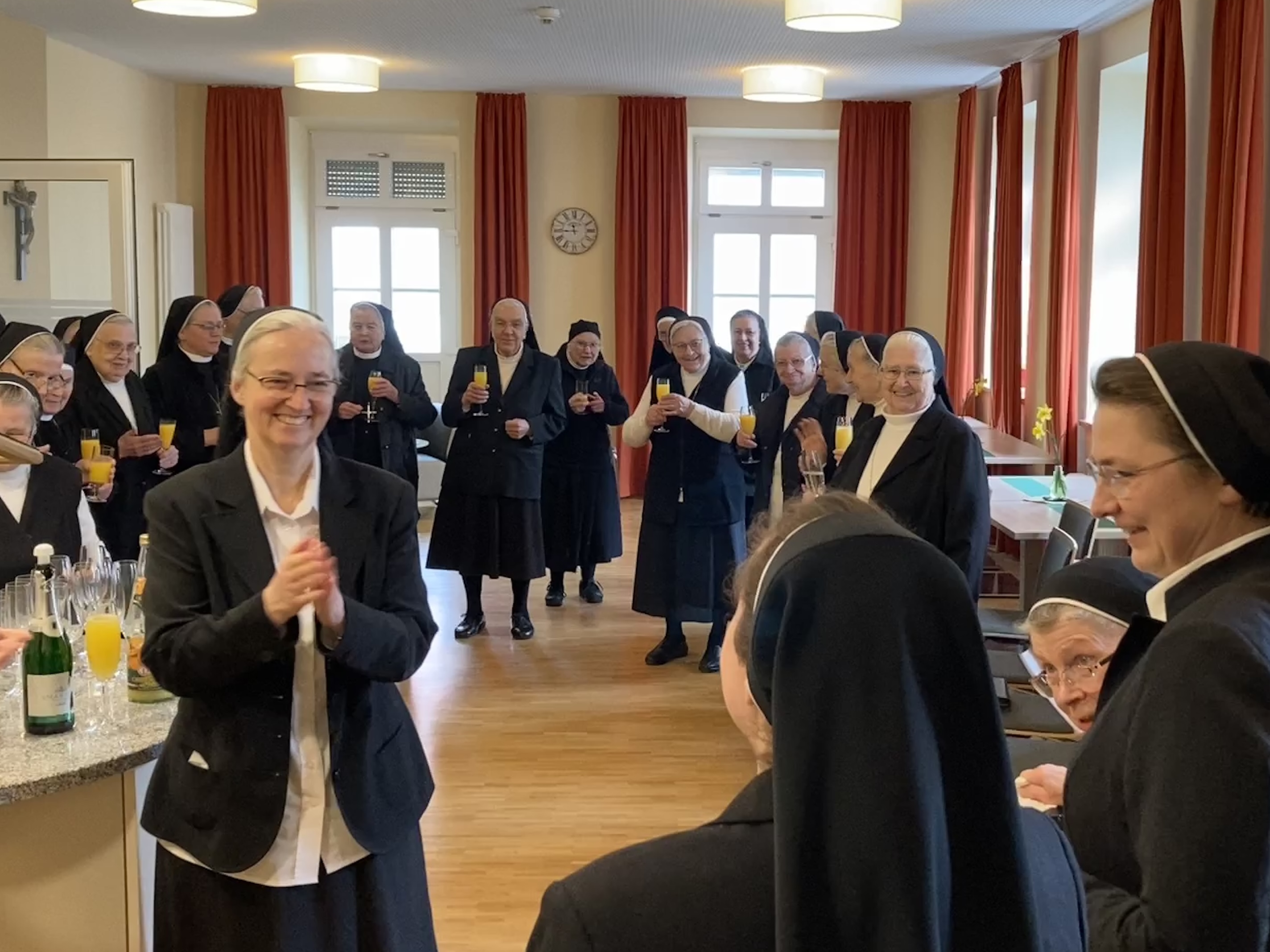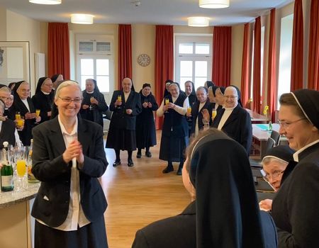 Nach dem Gottesdienst wurde die Neuprofessin von den versammelten Mitschwestern beglückwünscht und in der Gemeinschaft willkommen geheißen.