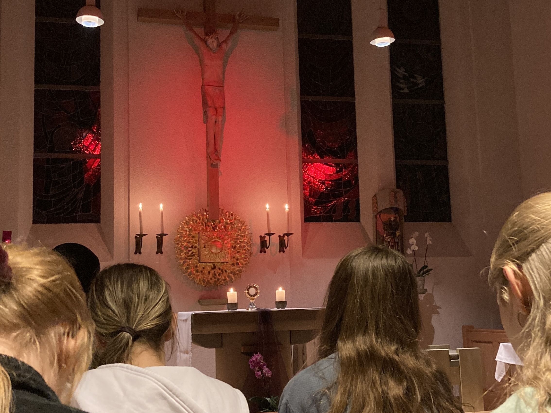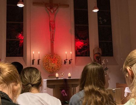 Bereits am Abend zuvor hatten sich junge Menschen aus der Umgebung, langjährige Wegbegleiter und Ordensangehörige versammelt, um sich auf Sr. Hannas Erstprofesseinzustimmen. Die Berufungsnacht begann mit Lobpreis, gipfelte in der Eucharistiefeier mit anschließender eucharistischer Anbetung und wurde mit dem Nachtgebet der Kirche, der Komplet beendet.