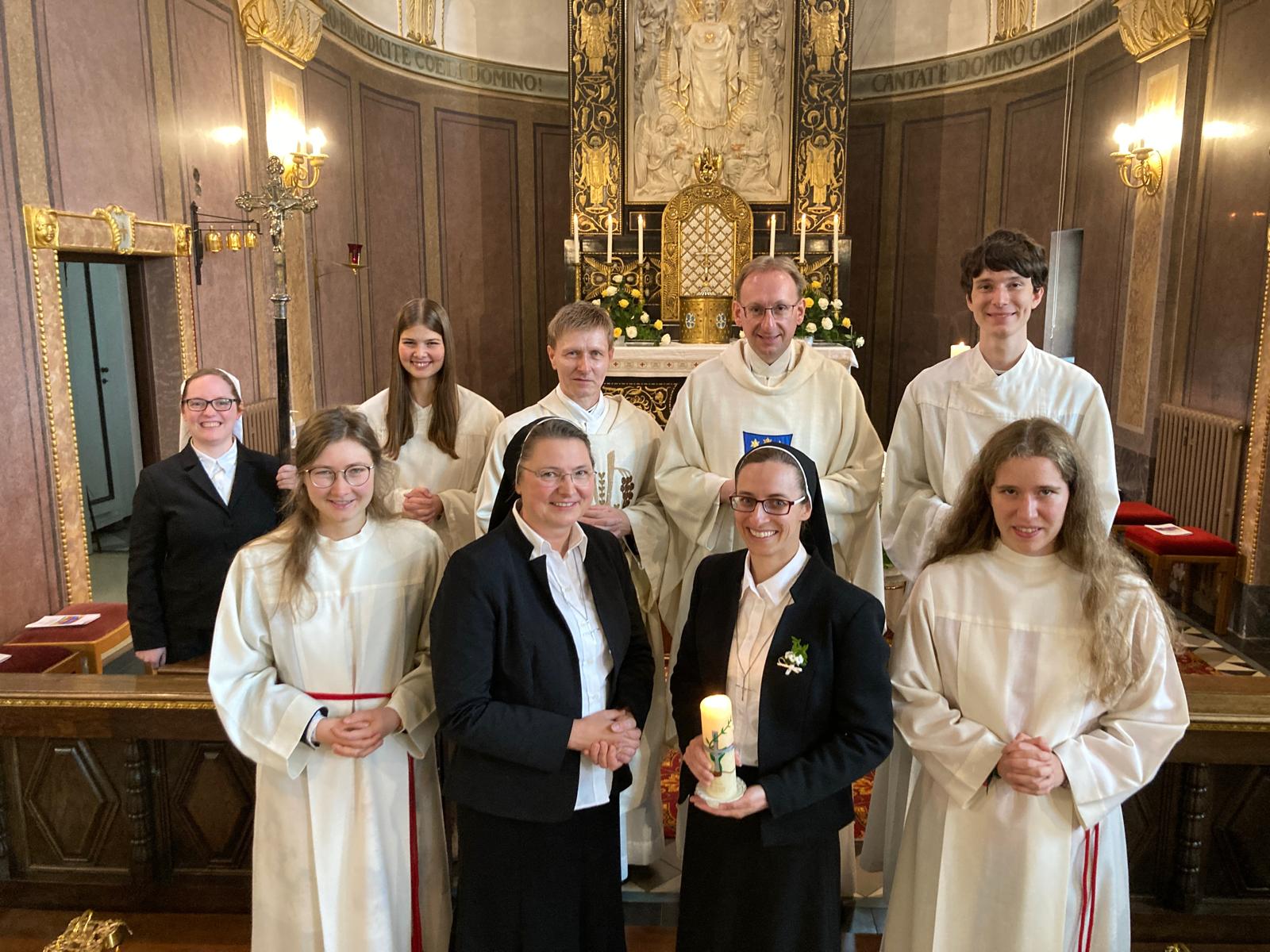 Dem Festgottesdienst stand Dr. Franz Haringer, Ordensreferent des Bistums Passau, vor. In seiner Predigt zum Osterevangelium, bei dem Maria von Magdala vom Auferstandenen beim Namen genannt wird (Joh 20,17), zog der Ordensreferent die Parallele zu Sr. Maria: „Wer immer ein Leben in der engeren Nachfolge Christi führen möchte – so wie heute Sr. Maria –, der hat bestimmt solche kostbaren Momente erlebt: Mein Suchen geht nicht ins Leere; ich bin gerufen mit Haut und Haaren, mit meinem Namen; nichts ist mehr wie vorher, wenn ich einmal erahnt habe, dass das Leben und die Liebe Jesu Steine sprengen kann und so immer aufs Neue Aufbrüche ermöglicht.“