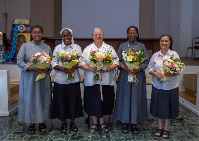 Am Ende des Kapitels wurde Sr. Dorina Zanoni als Generaloberin wiedergewählt. 4 Rätinnen stehen ihr zur Seite: Sr. Robina Pauline (Sri Lanka), Sr. Prisca Michael (Indien), Sr. Betty Mukonkela (Sambia) und Sr. Orfilia Mendonza (Chile).