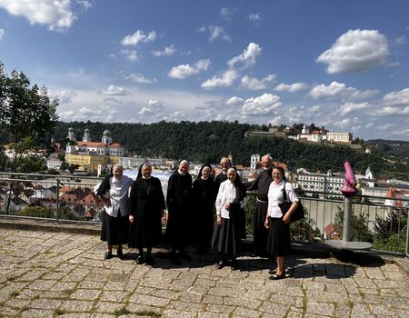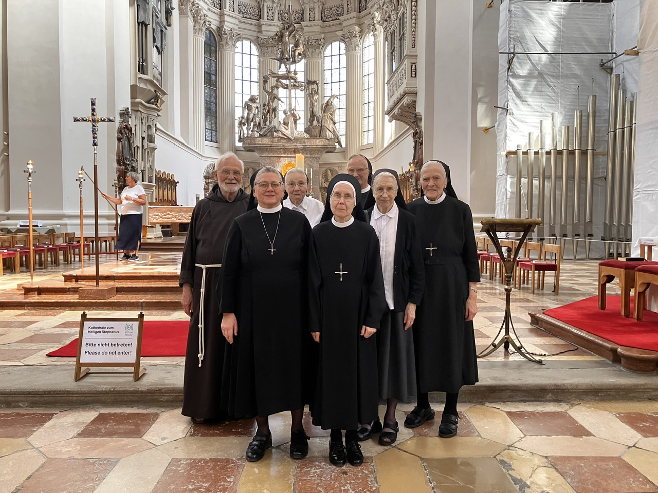 Am 28. Juni 2024 machte sich eine Gruppe von Schwestern, begleitet von unserer Provinzleiterin Sr. Marika W., auf den Weg nach Passau. Dort lud Diözesanbischof Dr. Stefan Oster SDB im Rahmen der Mariahilfwoche die Ordensjubilare zu einem Gottesdienst im Stephansdom ein.