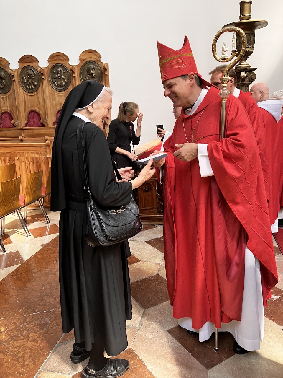 In seiner Predigt würdigte er die Ordensleute als Vorbilder für ein Leben als „eucharistische Menschen“, zu dem alle Getauften berufen sind, und sprach seinen Dank für ihr Lebenszeugnis aus. Es folgte ein gemeinsames Mittagessen und eine Orgelandacht. Die Schwestern beendeten den Tag mit einer kleinen Wallfahrt nach Maria Hilf ob Passau.
