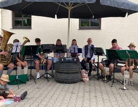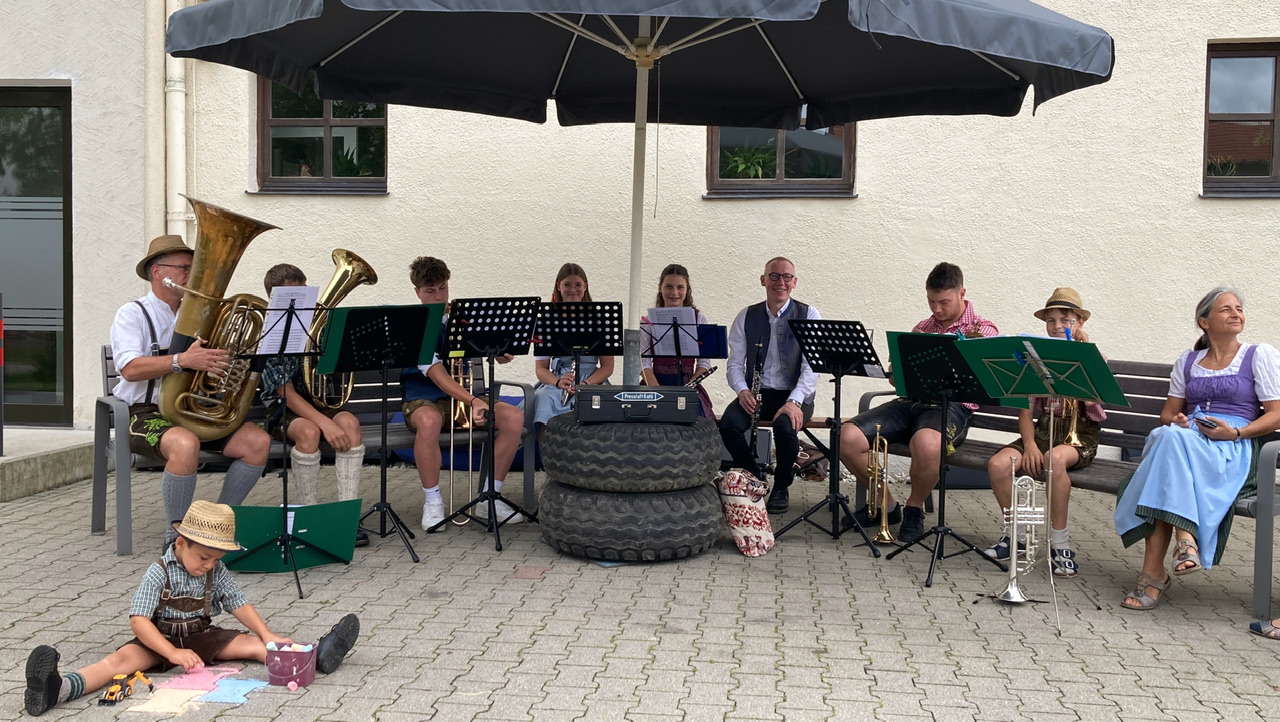 Die heitere Stimmung wurde besonders durch die eigens für diesen Anlass zusammengesetzte Blasmusikkapelle und das Küchenteam unterstützt. Letzteres sorgte mit seinem Können am Grill für das leibliche Wohl aller Gäste.