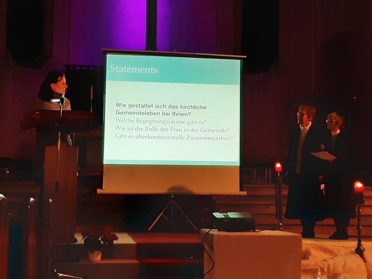 Eines der diesjährigen Themenländer war England. Deswegen gaben unsere Mitschwestern Sr. Margret und Sr. Ursula aus London Statements. Sie erzählten von kirchlichen und gesellschaftlichen Herausforderungen und Hoffnungen. Kirchenmusiker Christoph K. sorgte mit dem Gospelchor für ansprechende musikalische Umrahmung.