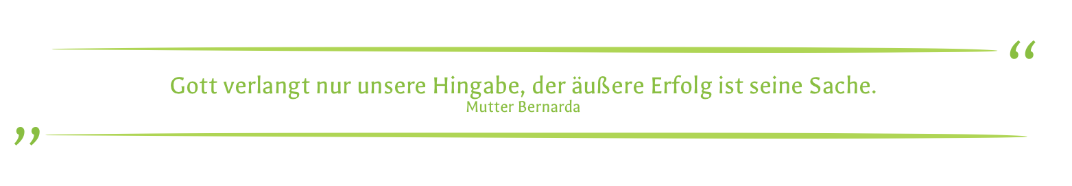Als Schwestern vom Heiligen Kreuz sehen wir im Geheimnis von Tod und Auferstehung Jesu Christi die Mitte unserer Spiritualität. Hörend auf das Evangelium und auf die Herausforderungen unserer Zeit wagen wir neue Wege und setzen uns für das Leben ein. In einem wertschätzenden Blick auf die einzelne Person ermutigen wir sie, die eigenen Kräfte und Fähigkeiten zu entfalten. Damit wecken wir Hoffnung.